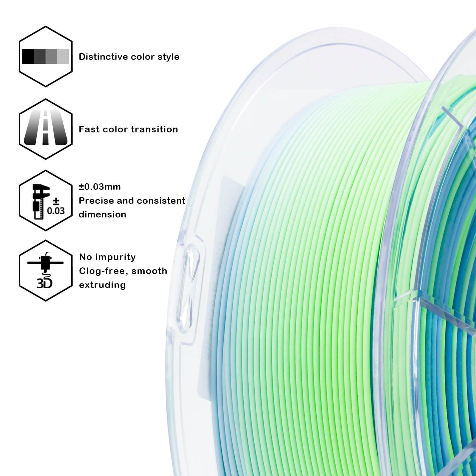 Ziro is my favorite filaments to print with! They print amazing every time. I never have issues and I just love how nice the customer service is! They also offer the best colors I have seen there is so many to choose from they are my go to filaments! This one is so nice its like powder soon you see no lines it looks like air brush very beautiful transitioning of colors!