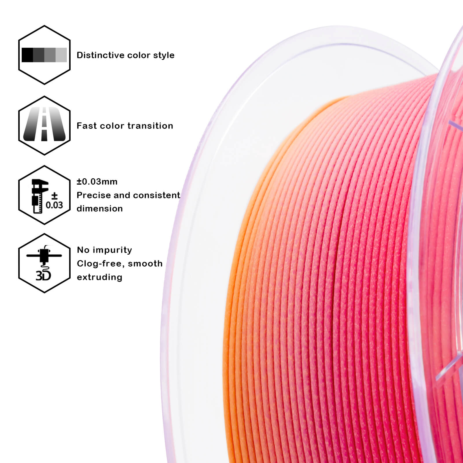 Printed flawlessly right out of the (nicely secure) packaging. As usual, the color change isn't as fast as would be ideal; I only really got two colors out of this dragon, which uses 90g of filament; the same model gets three colors with some other brands. The surface is rougher than my other matte PLAs, almost kind of scratchy, which makes me wonder what it's doing to my nozzle over time.