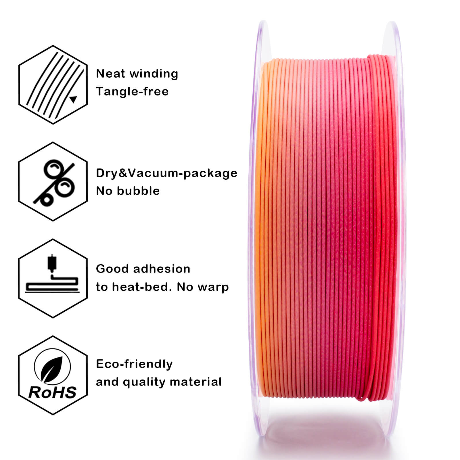 Wow!! This filament is absolutely perfect!!! No clogging, great adhesion, not stringy........and the cost is great. Well worth it. Just made another purchase of it. I am now a future customer