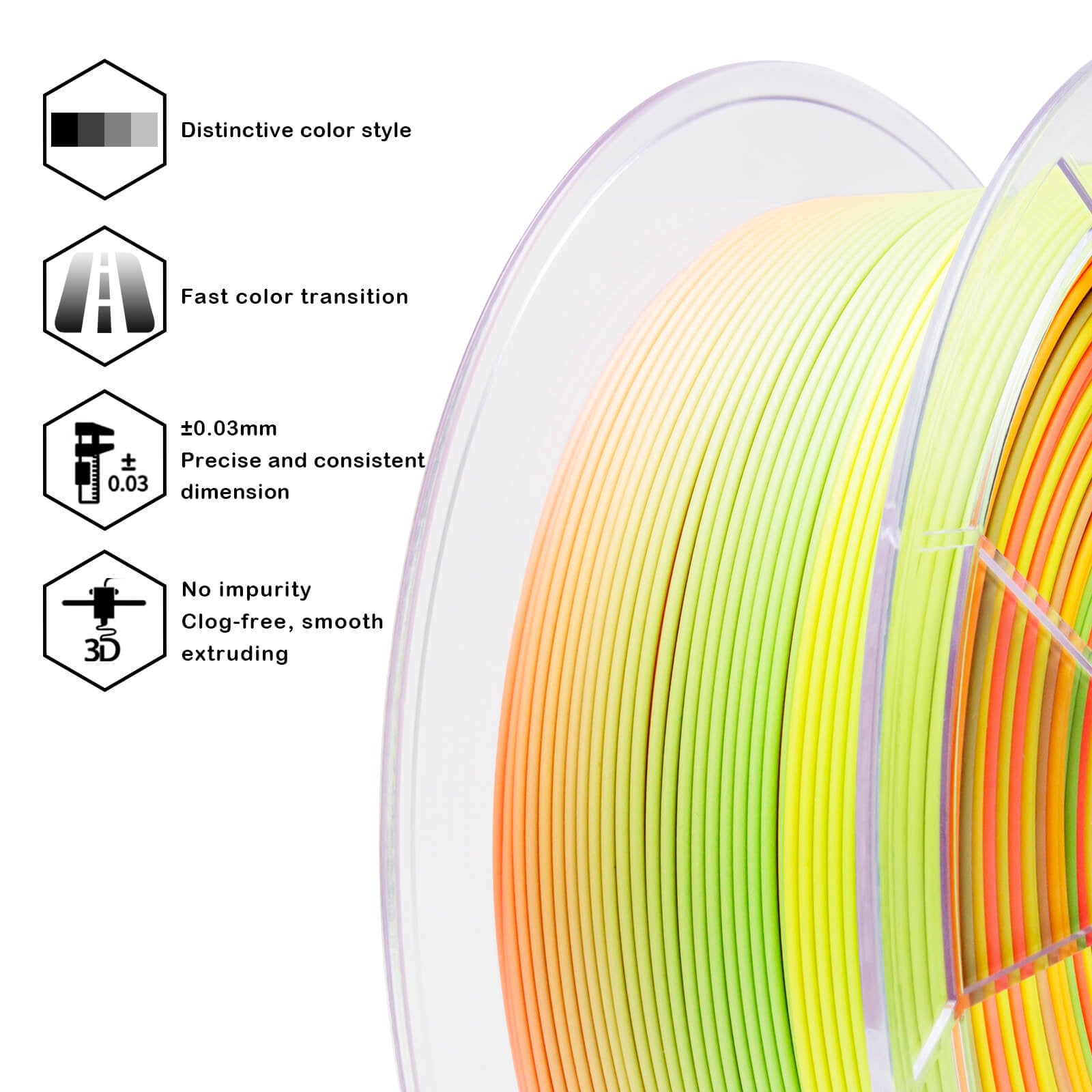 What I didn't like about this trip color filament was that it stated faster color change, but in small prints it was almost imperceptible. I had to use it on bigger prints to notice the color change.