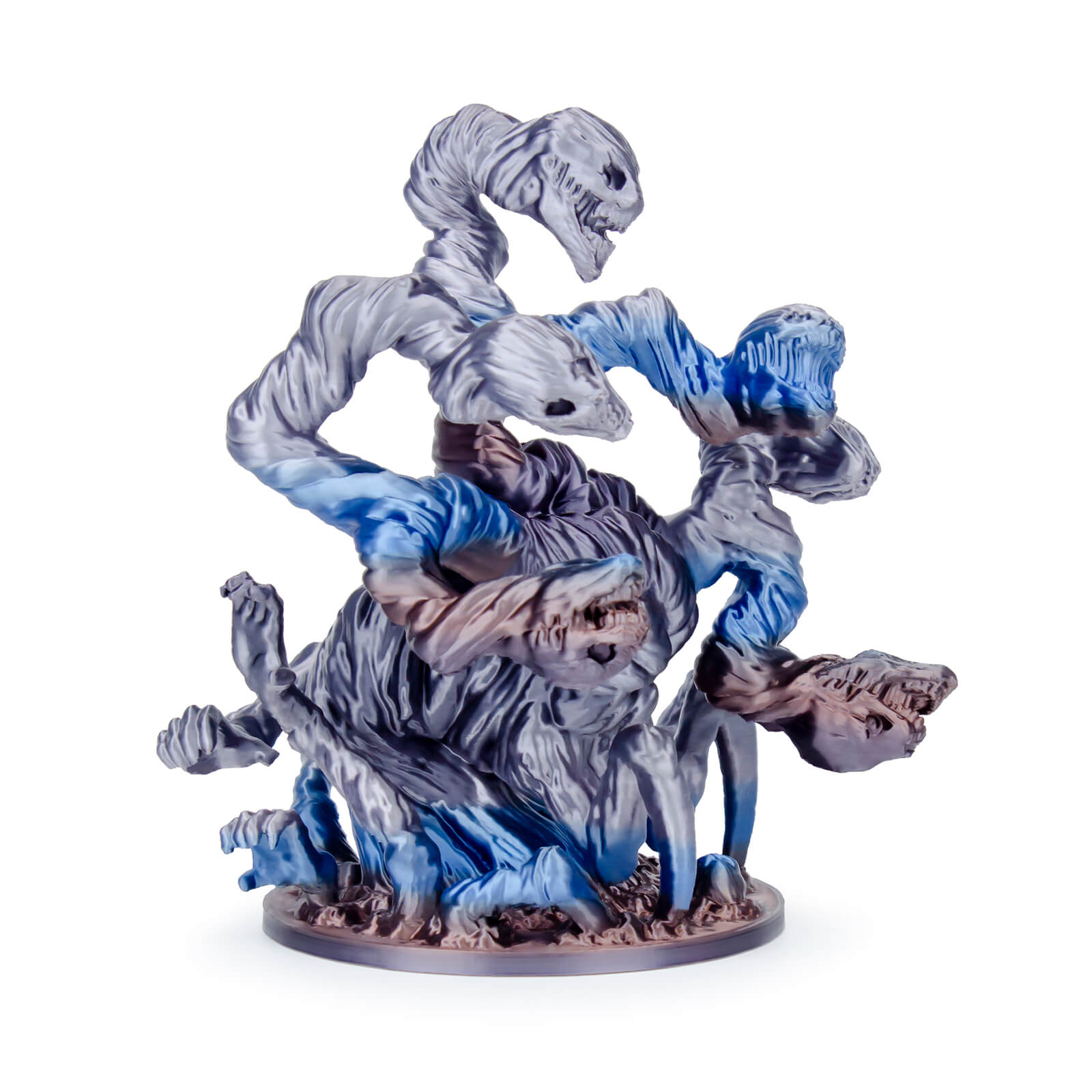 This coloring changing filament makes a shiny pattern going from a metallic silver, bronze, blue, and then repeats. The filament adhered to the buildplate very well, I almost couldn't remove it without a flexible build plate. In terms of individual layers there was no separation and the filament blends so well I can hardly notice layer lines unless up close. I printed a wolf model using an iPrusa MK3.9 on default prusa PLA settings with a layer height of 0.2 and temperature of 215C. The filament box includes a reusable bag to store the filament when it it use, this is fantastic and I think more companies should do this. There was also a first for me, it even includes a 5M strand of "cleaner" filament that is meant to be used between material type changes to keep nozzle from clogging. I thought that was pretty neat, I'm usually doing cold pulls when changing from Petg to PLA. The cleaner filament is a little more tacky than PLA which seems to grab any residue in the nozzle and pull it through. Super satisfied with this filament and like the variety of colors available.
