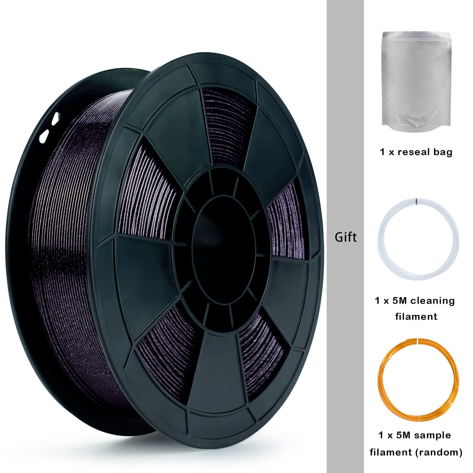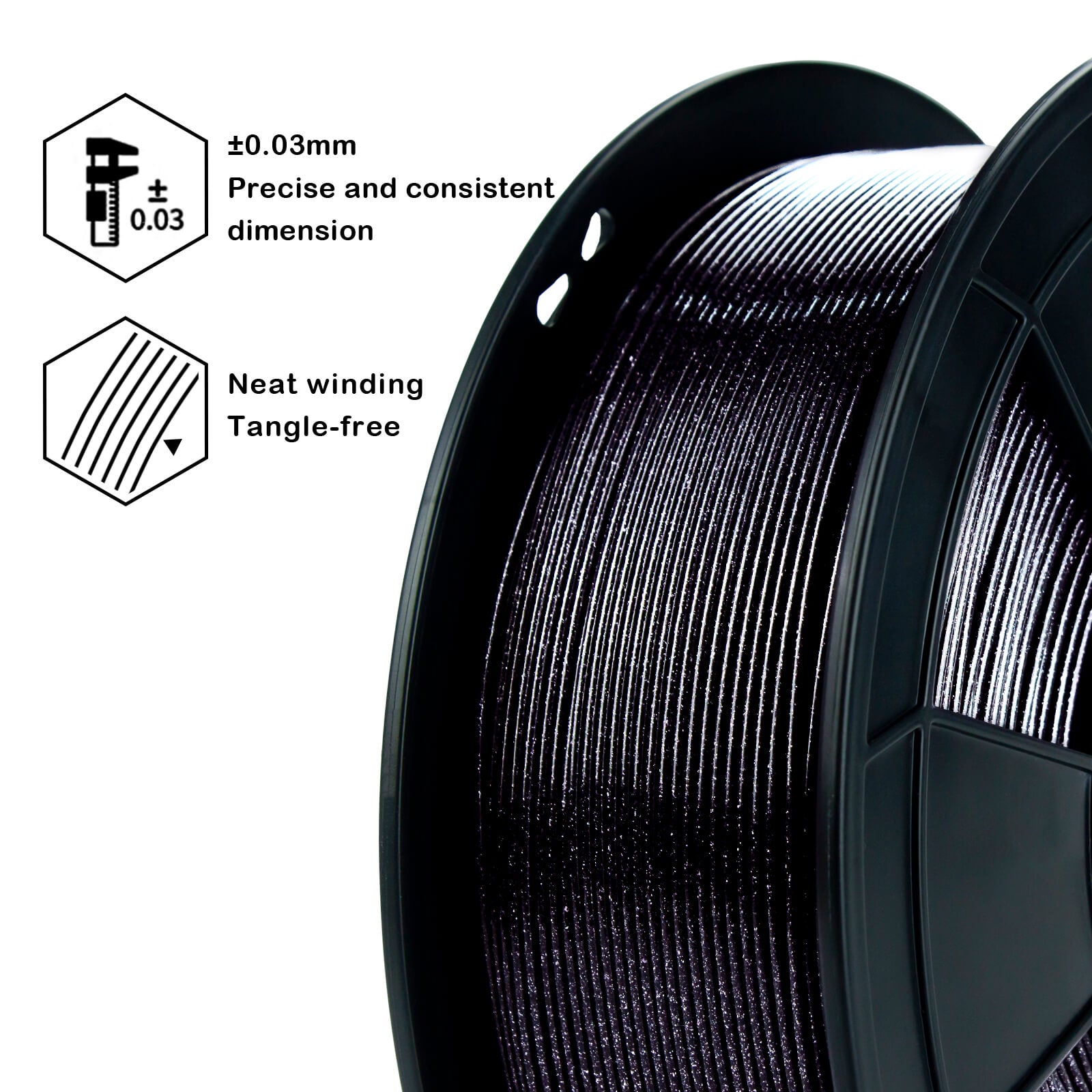 Ive ordered two rolls of this. Both rolls have been extremely brittle and had to sit in the dryer for well over 12 hours, And then about halfway through the roll, I had to dry it again. It broke off in the Boden tube and I had to dismantle the AMS to pull it out, which is very irritating.. I was hoping to have More of a shimmering affect than I got but other than that, the material dried out good and prints well. Im about 50-50 on whether I order this again. Ill see how the rest of this roll prints.