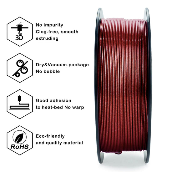 Adhesion is perfect, if that exists, but I do use mouse ear brims on corners to be sure. I cant say enough about the color and glitter, although Im not sure I like the glitter term as it sounds a bit much. There is a bit of sparkle, but it isnt overly the top. I often find myself replacing using this red over regular red because its so nice, even though its more of a brick red.
