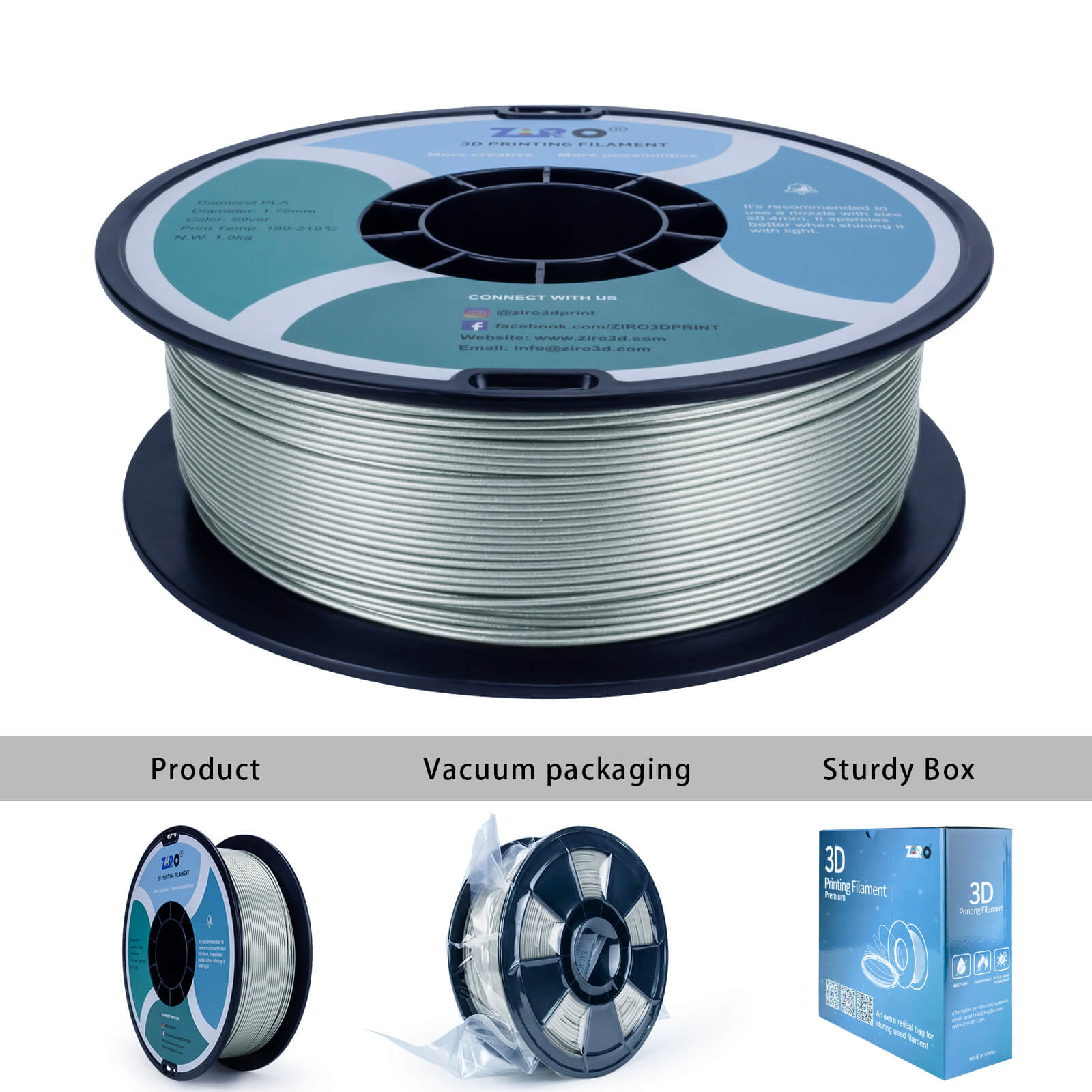 I have been very impressed with this filament. I extrude at 195 deg C onto a bed at 60 deg C and great results all the time (on a Prusa i3 mk3s+). Have hardly issues with the MMU2S too. The glitter quality is good. On smaller, thinner items it can be seen. Better on larger prints. Will buy again. Bought the silver diamond (opaque) version.