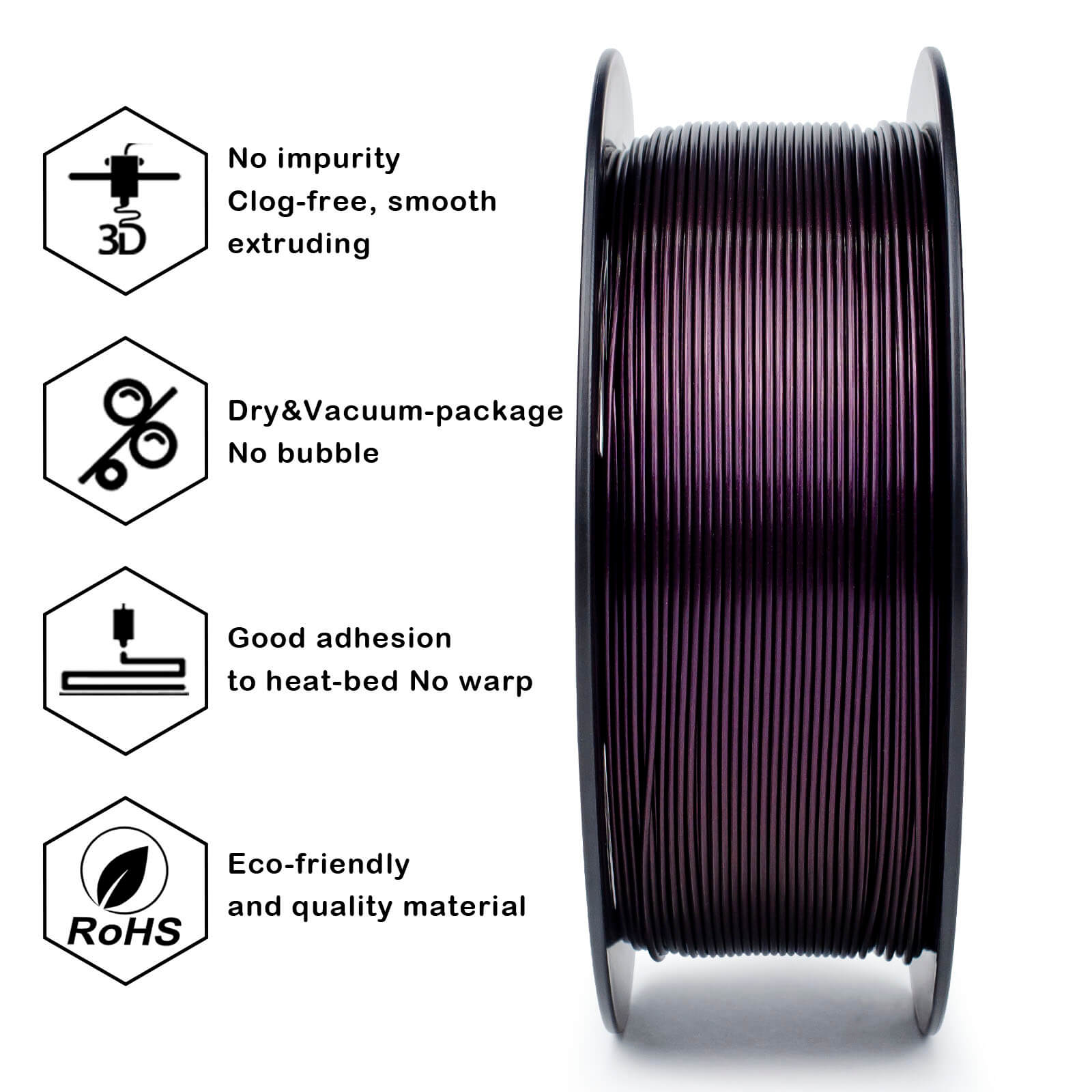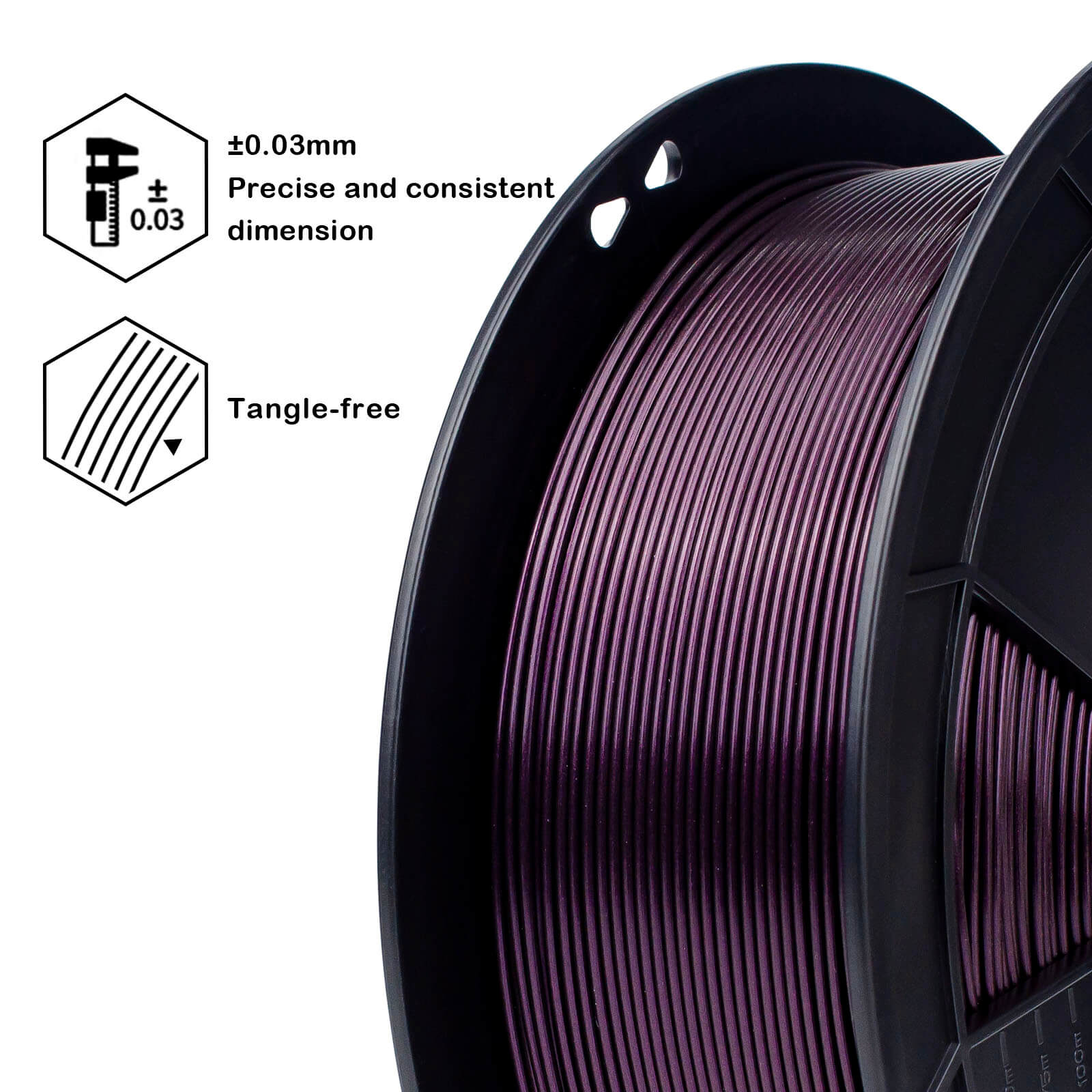 I've always like Ziro filament, some of my best prints have come out with this filament after its been dried, and this was pretty cool stuff! I liked it way more than I thought I would. I tend to stay away from most silks because I feel I never get the adhesion or the color right when printing with it. But this stuff prints out as it goes in and with my normal PLA settings. The glittery effect is nice to show off under light. The filament its self had no adhesion issues, good layering, very low stringing for me, decent structural strength. I would suggest going with nozzle other than brass however, I'm not sure the longevity of that abrasive glitter would be good for a nozzle made of brass. Other than that, I don't really have anythign negative to say about it.