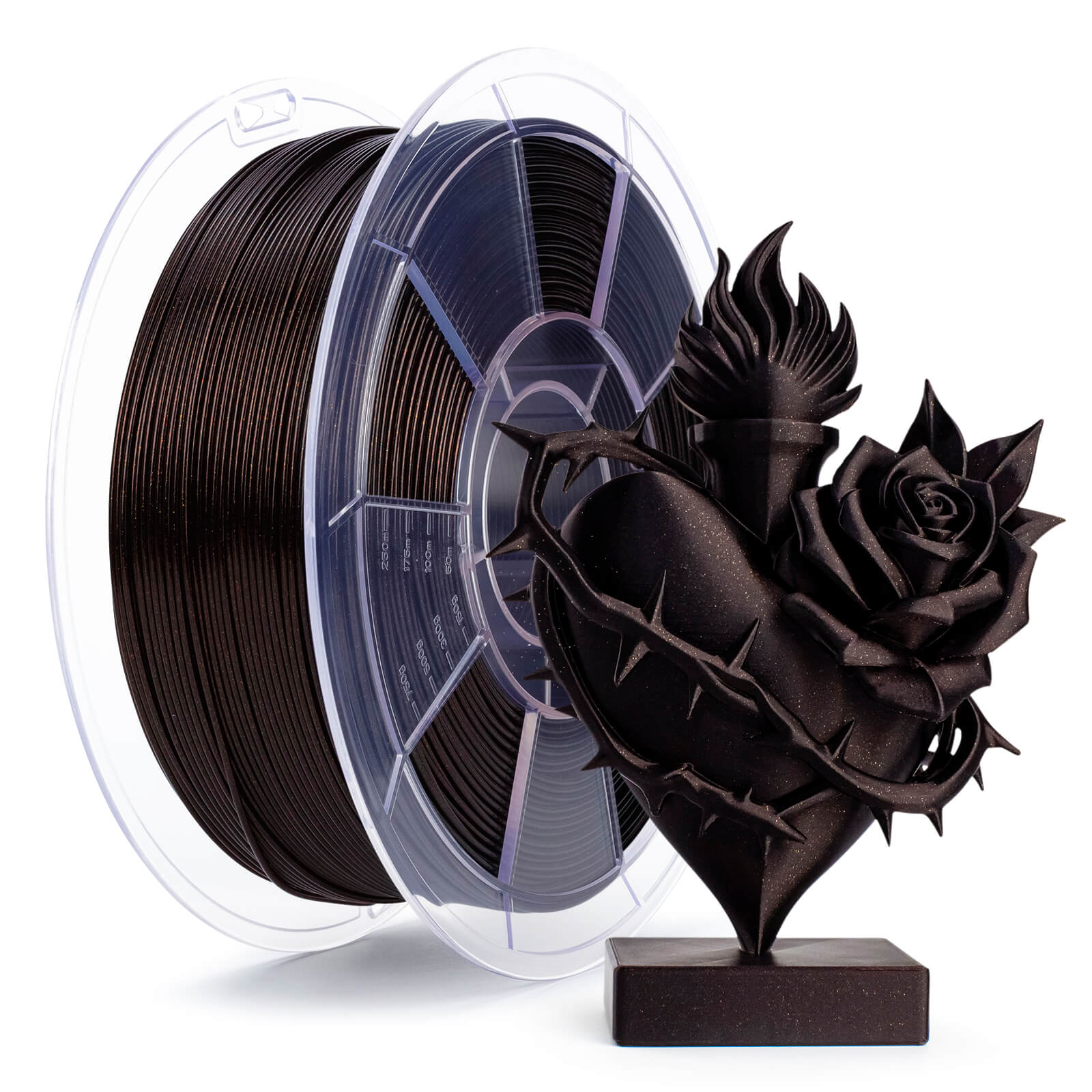 [Glitter Twinkling Firefly Series PLA]- The ZIRO "Flame Red" combined shiny glitter with flame red PLA base. It's achieves a dazzling, charming, sparkling looking in your 3D works. (Different thickness of model's wall will show different light transmittance )