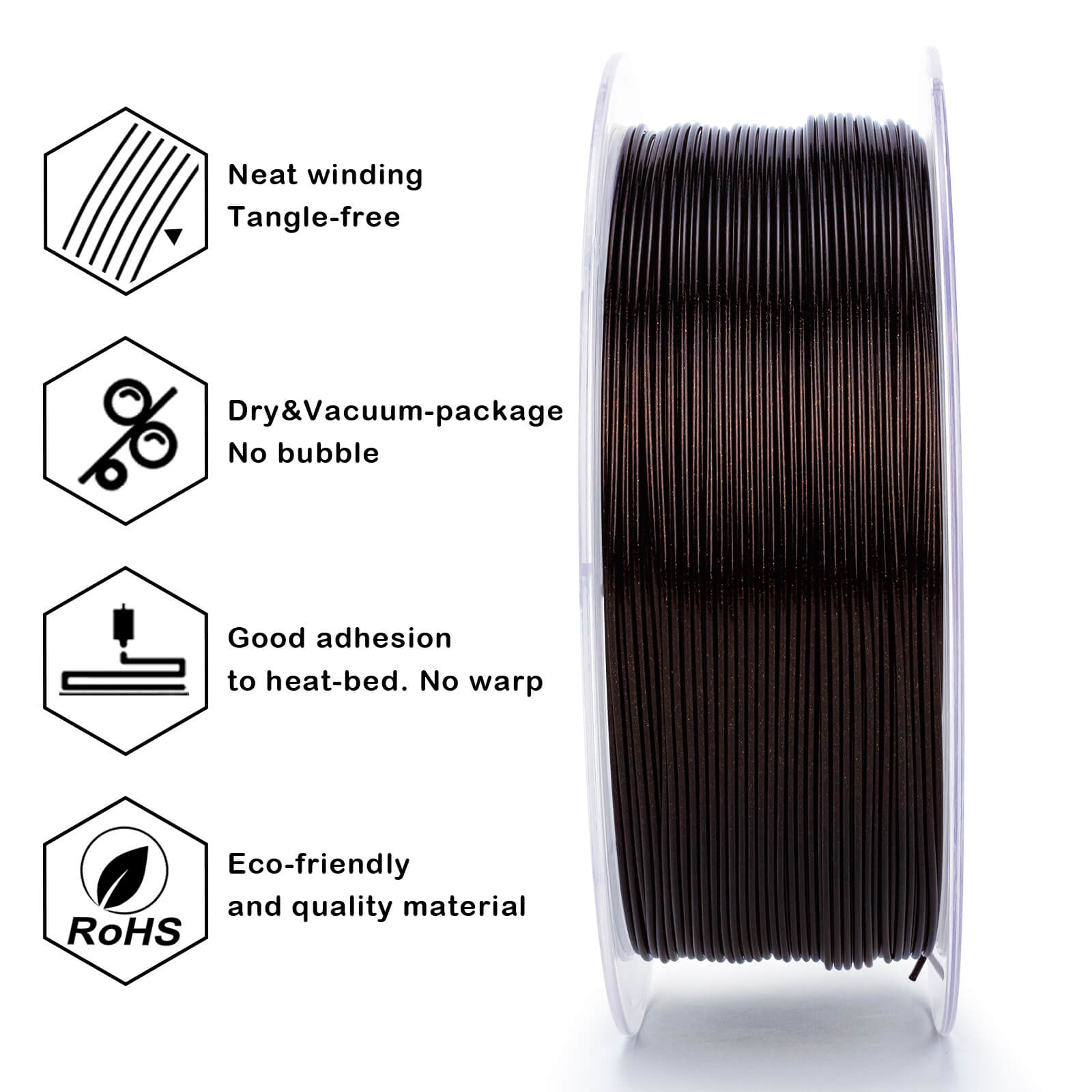 [Fits For Most FDM Printers]- ZIRO 3D printing filament works perfectly with most printers on the market. A plastic reel with a larger inner diameter design makes feeding smoother. Spool diameter: 7.99inch, spool width: 2.48inch, hub hole diameter: 2.36inch. (empty reel's weight is about 160-165g, rest filament weight mark in the backside of the reel)