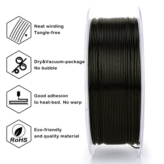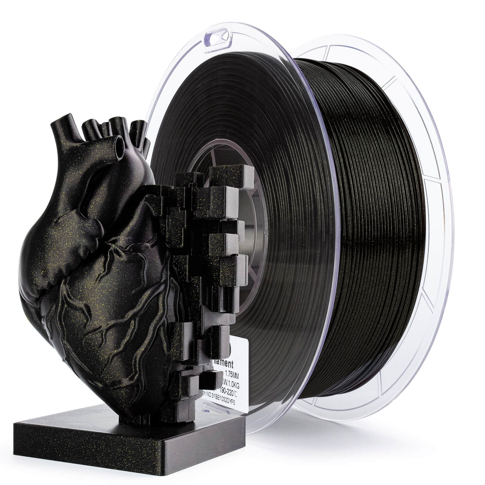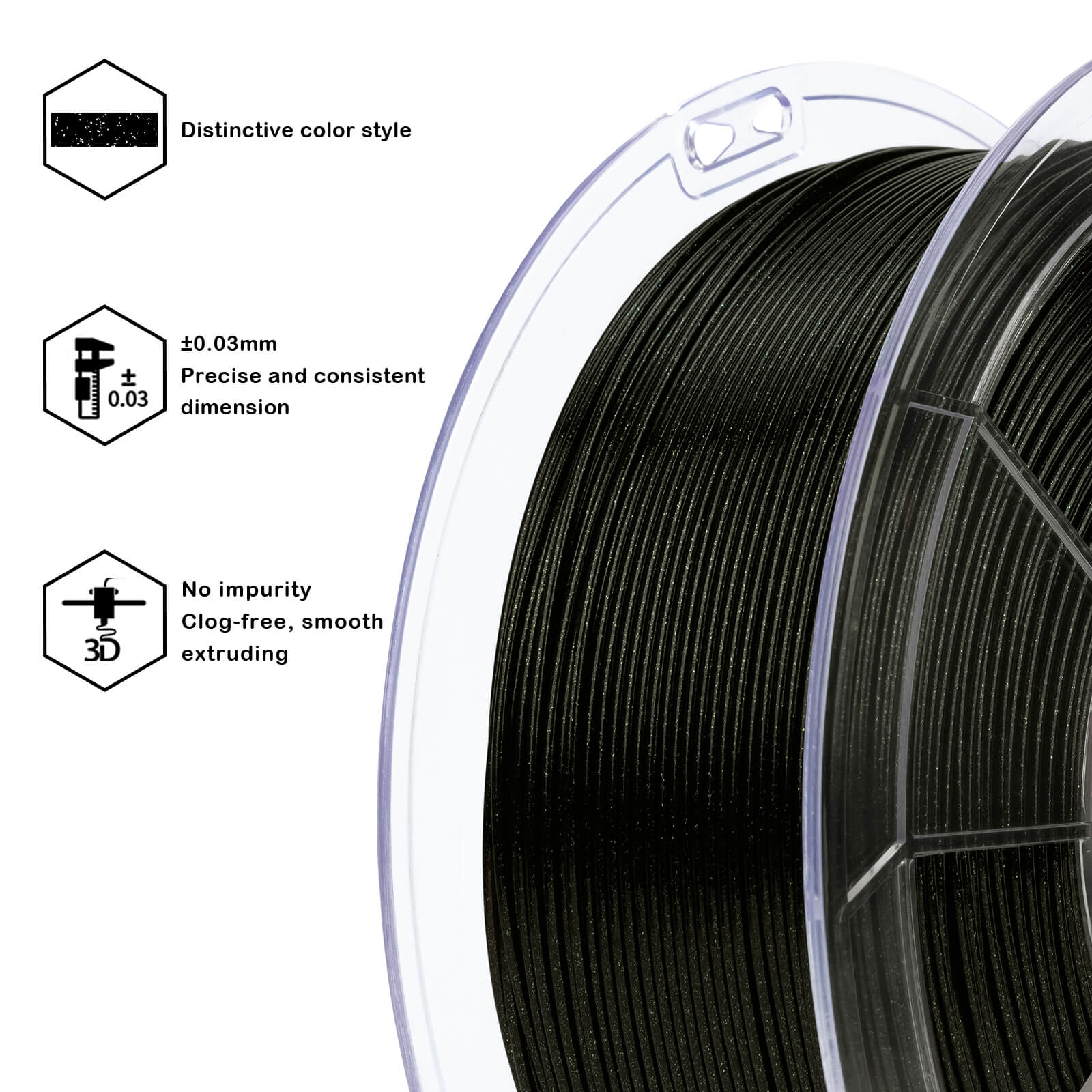 [What You Will Get]- 2.2 lbs Firefly Obsidian Gold PLA + a free reseal bag + a 5M cleaning filament + a 5M sample(random color). If you are looking for amazing galaxy style PLA, this one is your go-to choice.