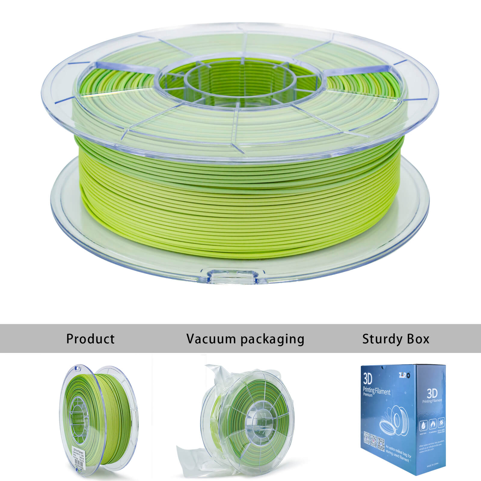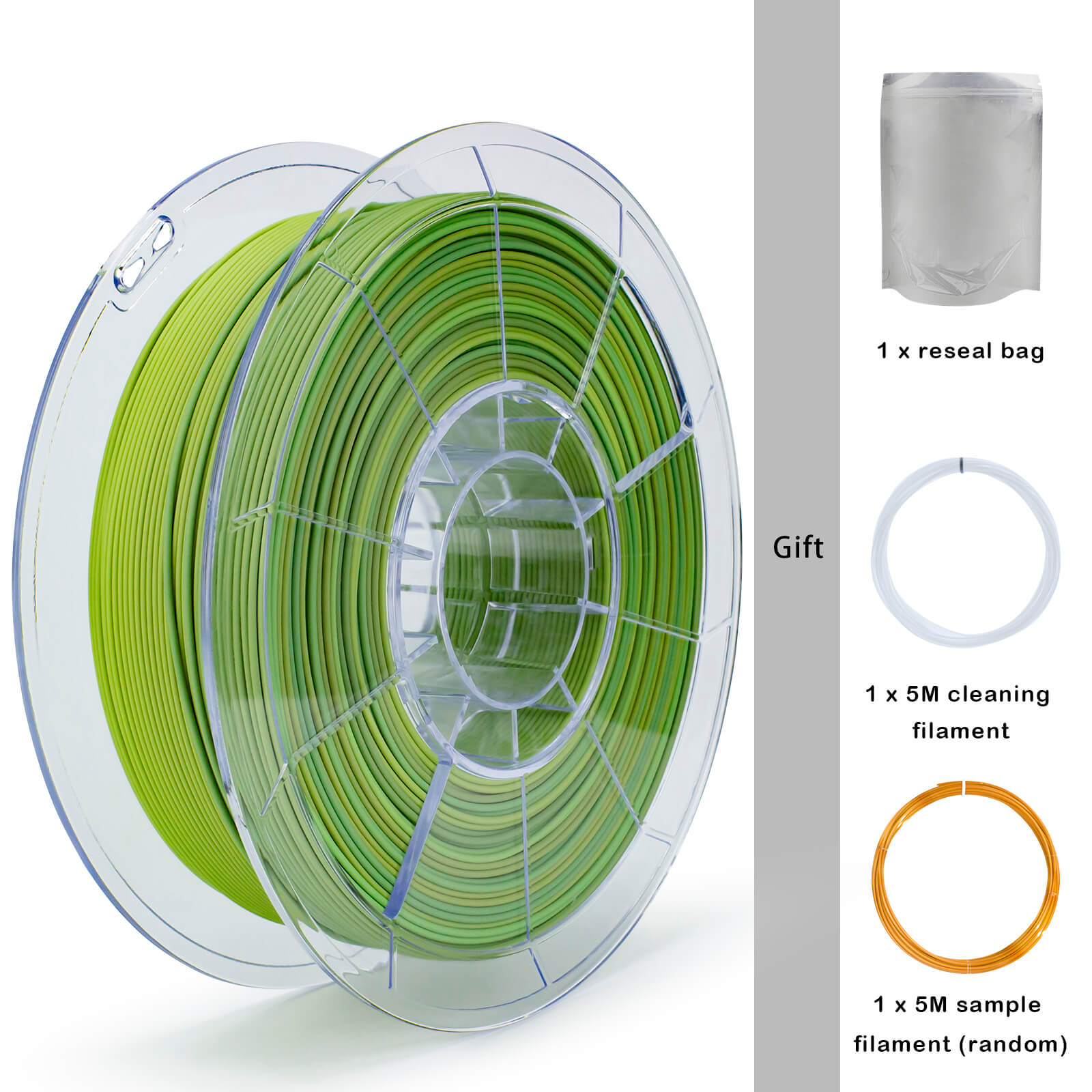 I'm a new 3D printer and this was my first gradient filament. I was afraid to use it at first. I have a Bambu Lab P1S w/AMS and selected the Polyterra PLA setting with a 60c bed. It printed perfectly every time so far. Pictured are the MatMaireMakes Zombie Bearded Dragon and Twisty Prints Hodag. I printed the Hodags one right after the other, and the same with the Zombie Beardie, so you can see the full gambit of colors the spool has to offer. Models can look very different just depending on where on the spool the colors lie, but the gradual fade is excellent between the colors and the color changes fairly quickly. The filament itself felt very dry and dare I say "rough" or harsh to the touch, unlike the Inland or Bambu filaments I had used before which feel so smooth, but it had no issues running through the AMS, and I appreciated the plastic spool because the cradboard ones have such issues rolling and often need rims printed so they function in the AMS. No need with Ziro and I plan to try more colors in this brand FOR SURE! So clean of print, and no issues. One of the more expensive filaments out there but oh so worth it for such ease of use!