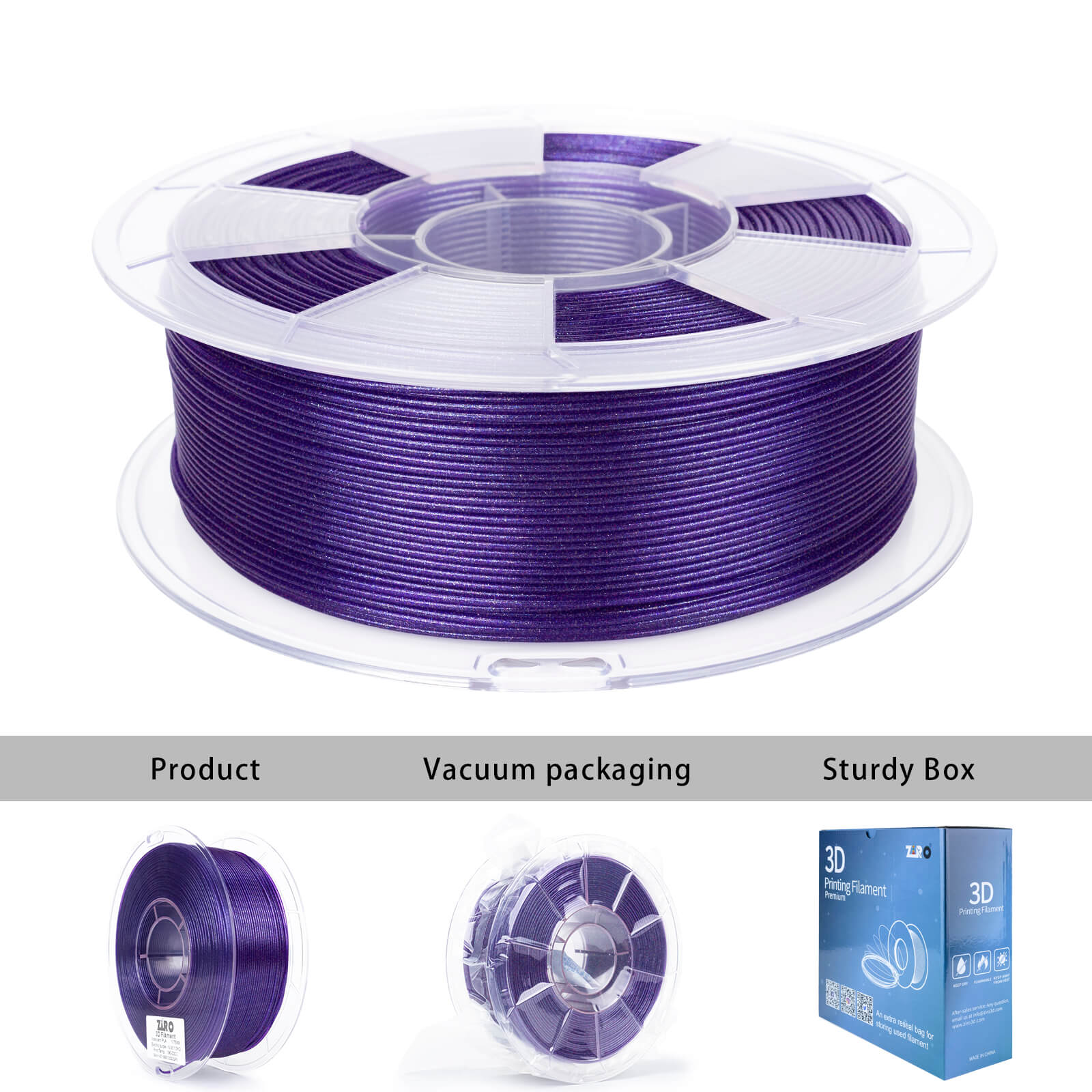 ZIRO Iridescent Series PLA Twinkle Effect Filament 1.75mm 1kg/2.2lb Spool , Electric Purple