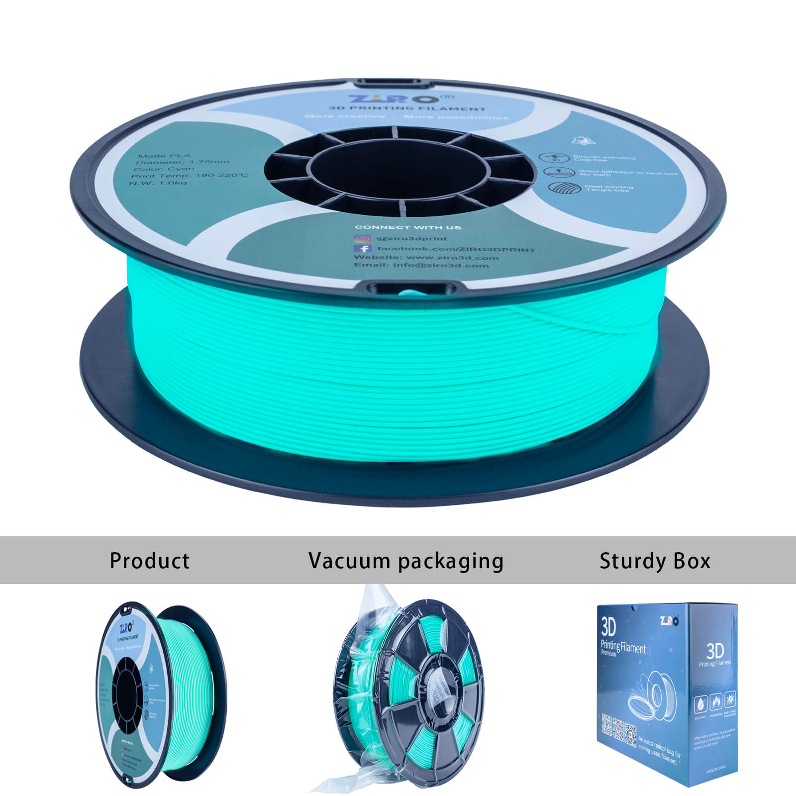 This is the most beautiful teal color! Perfect matte finish! This is the my 3rd filament from ZIRO and have been very happy with the quality and the price, they even give you a nice dry bag and some samples of their translucent colors ( I havent decided what to print with them yet but excited to use them ). Will be definitely buying this color again for sure!