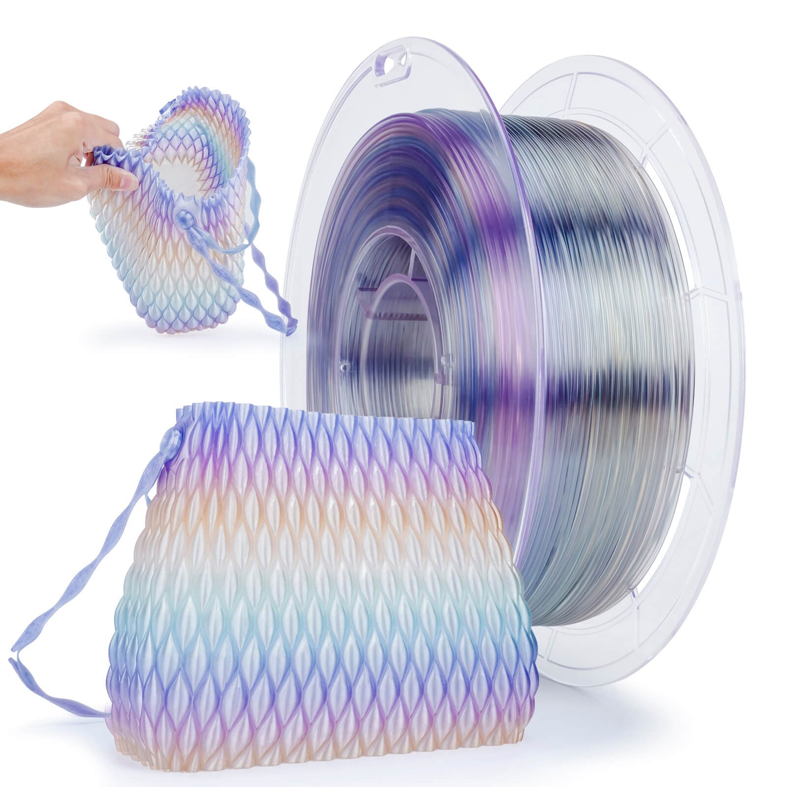 [What You Will Get]- 0.8kg TPU-clear + a free reseal bag + a 5M cleaning filament + a 5M sample(random color). If you are looking for amazing TPU printing material, this one is you