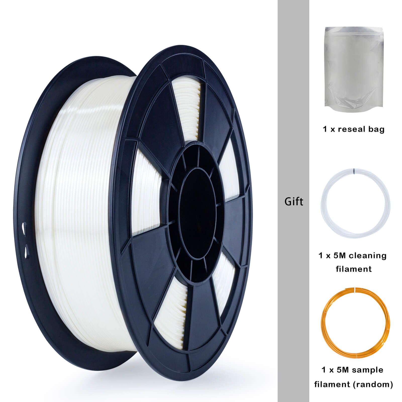 The white silk is decent filament for the price. The storage bag and samples are a nice touch. Stay away from their black pla pro at all cost.
