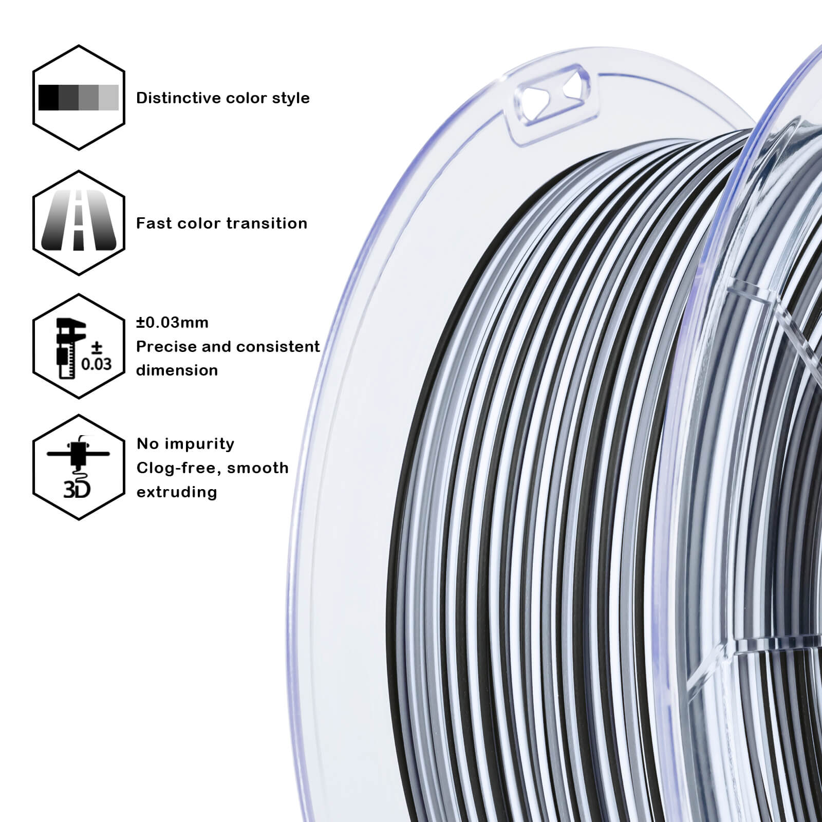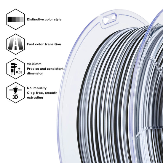 [SUPER FAST Color Changing]- The ZIRO "Zebra Stripes" combined multiple colors in one matte PLA filament. Higher-cost dynamic color production technology to achieve the super fast color changing aim. The colorful stripes will imparting your 3D works an interesting visual effect.