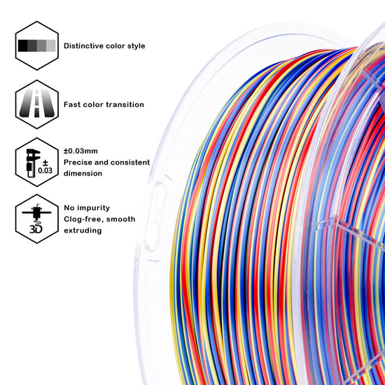[SUPER FAST Color Changing]- The ZIRO "Firework Stripes" combined multiple colors in one silk PLA filament. Higher-cost dynamic color production technology to achieve the super fast color changing aim. The colorful stripes will imparting your 3D works an interesting visual effect.