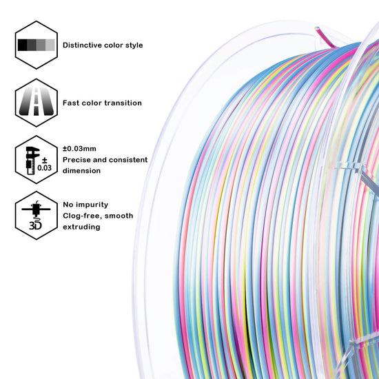 [SUPER FAST Color Changing]- The ZIRO "Hologram Stripes" combined multiple colors in one silk PLA filament. Higher-cost dynamic color production technology to achieve the super fast color changing aim. The colorful stripes will imparting your 3D works an interesting visual effect.
