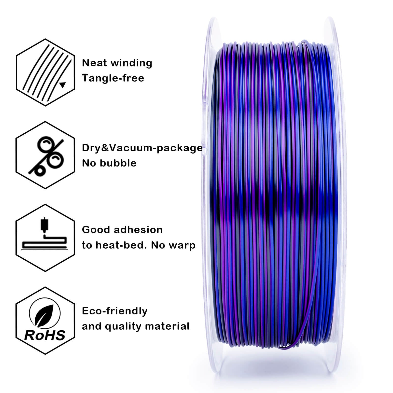 [Hight Quality PLA]- ZIRO filament is made of premium raw material with excellent printability: good ductility, higher strength, no odor, no warp, clog-free, and bubble-free. Completely drying for 24hrs before vacuum seal. Allowing 3D printing enthusiasts to create stunning works much easier.