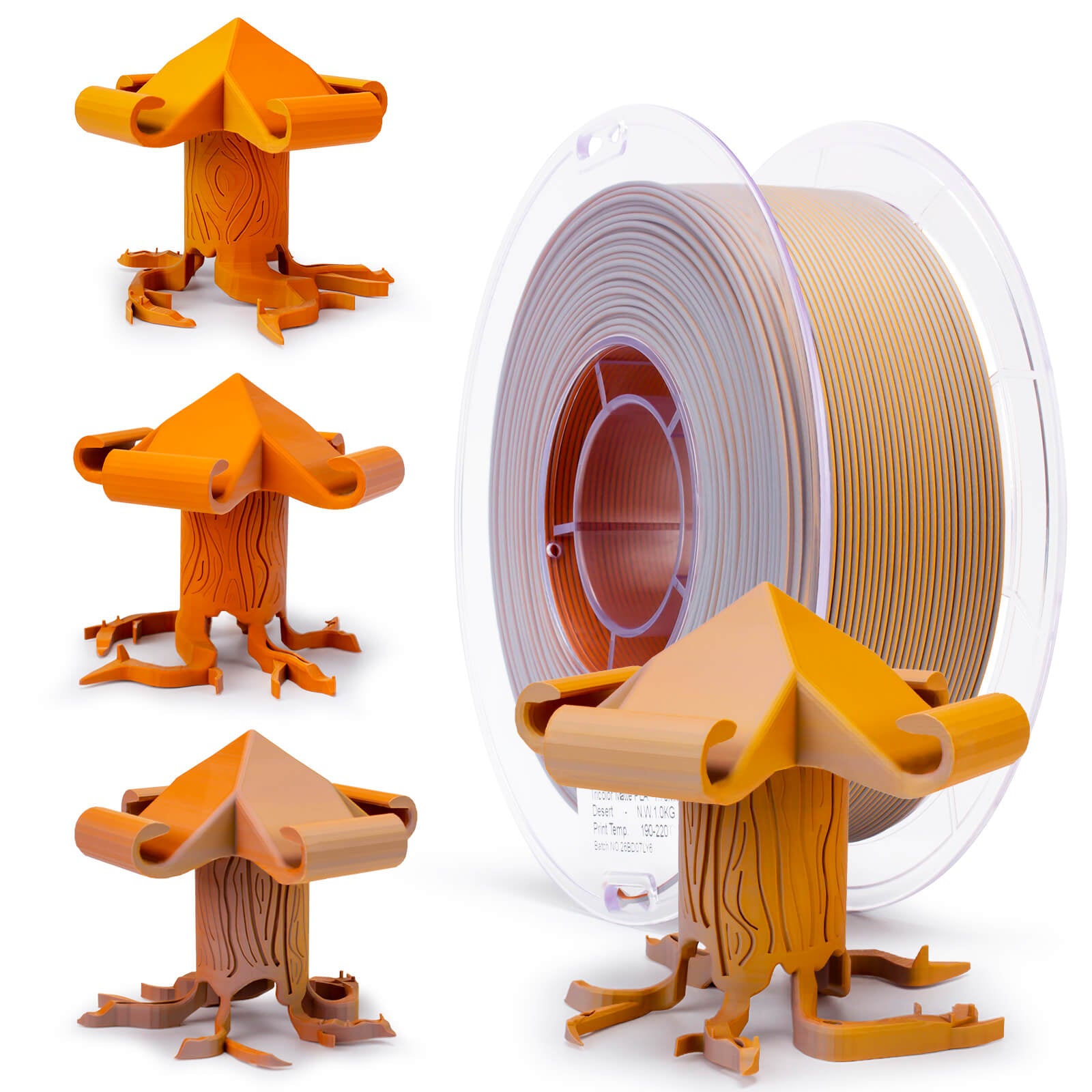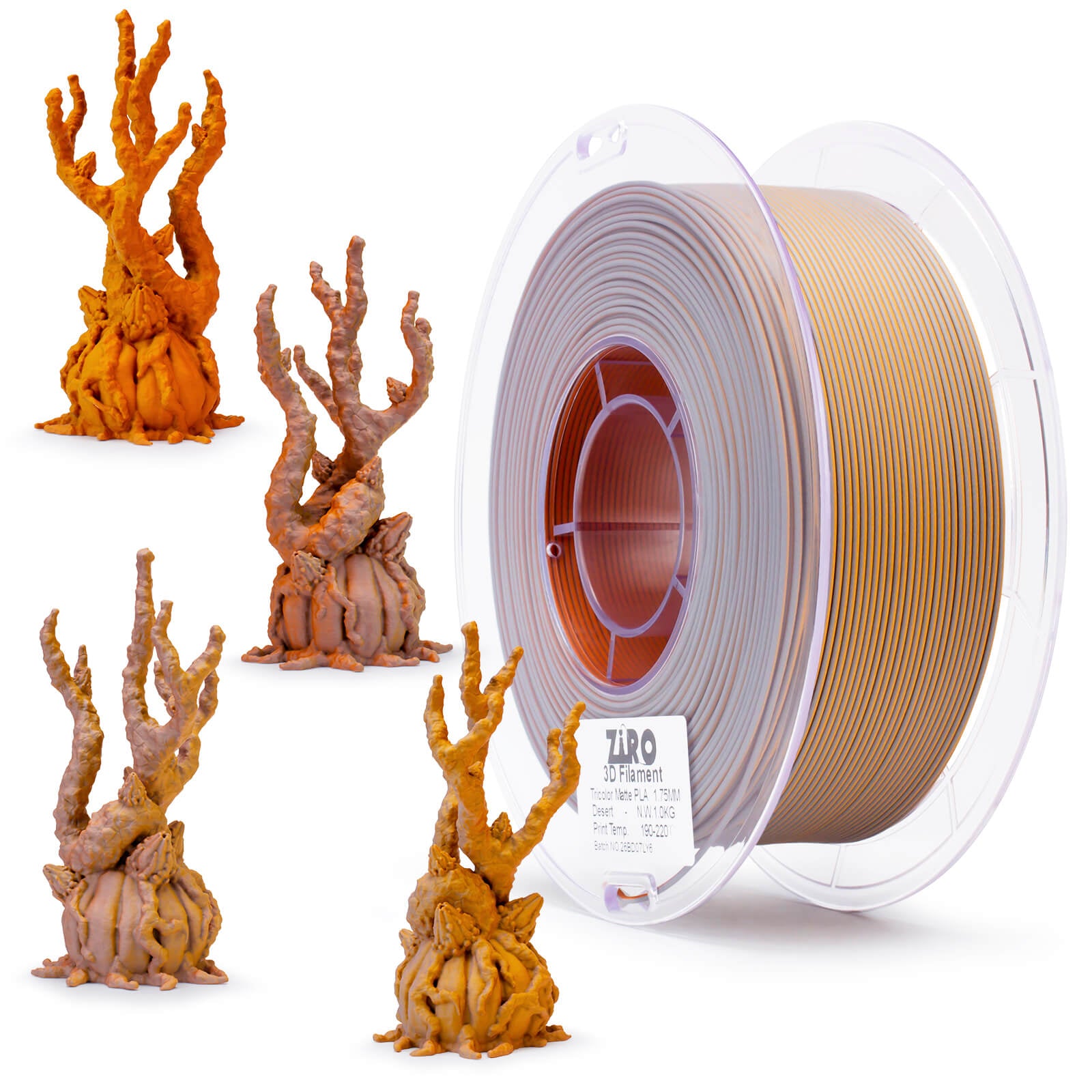 I've had very good luck with the Ziro tri-color coextrusion filaments. The Desert is similar to Volcano but it swaps out the redder tones for more of a sand color. Results look great. Huge fan of this line.